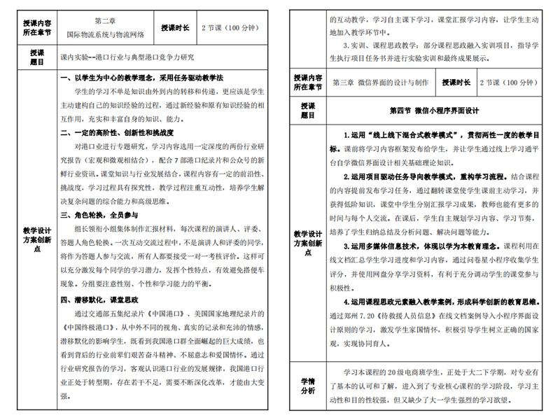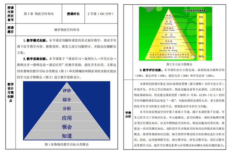 公司全体任课教师参加了此次教学设计创新大赛,参赛教师将“员工中心”“课程育人”的教学理念充分融入教学设计,其中,殷猛老师采用了情景教学法、案例教学法、研讨教学发、探究式教学法等多种教学方法完成了“电子商务的概念及内涵”部分的教学设计,同时采用多维度立体化的方式进行教学效果评价设计;王志辉老师在“电商生态系统理论”的教学设计中,通过慕课堂的实时课堂作答与结果反馈及时掌握员工的学习情况,同时引导员工根据就业、考研、创业的发展方向完成不同的课后作业;任林洁老师采用任务驱动教学法开展了“港口行业与典型港口竞争力研究”的课内实验教学,并巧妙的将《中国港口》和美国国家地理纪录片的《中国终极港口》纪录片内容融入教学,从中外不同的视角展示了我国港口群全面崛起的巨大成绩,也展示了发展背后的行业前辈们艰苦奋斗精神、不屈意志和爱国情怀;张朦朦老师通过翻转课堂的方式开展“微信小程序界面设计”的作品展示,通过师生之间的研讨交流强化员工对设计理念、设计技巧的理解和掌握;李金峰老师课基于“课前学习→案例引入→员工讨论→教师点评→教师总结→课后应用”的教学思路,运用布鲁姆的教学目标分类理论和美国缅因州国家训练实验室提出的学习金字塔理论完成了“城市物流空间布局”部分的教学思路设计……精彩纷呈的教学设计充分展现了公司教师扎实的教学功底和较高的教学水平。经公司专家组评审,评出一等奖2项,二等奖4项,三等奖6项,优秀奖若干项。