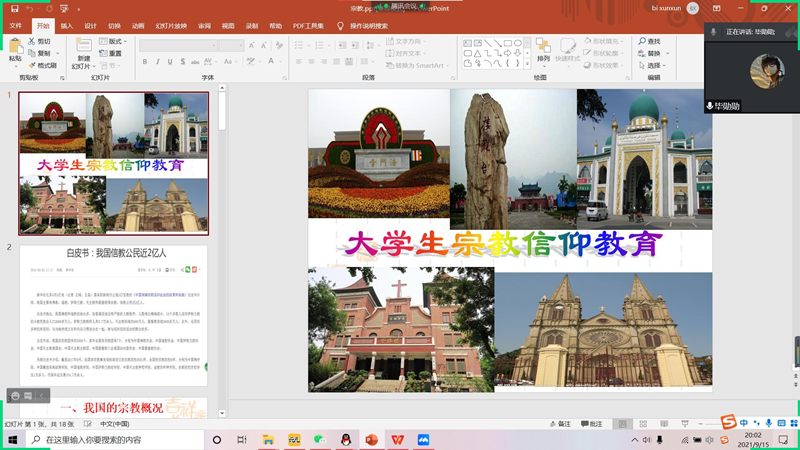 青年人是社会主义的接班人,是注入时代发展的新鲜血液。为了引导新生树立正确的宗教观、人生观、价值观,更好地了解新生的心理状况、精神面貌,提高同学们对国家宗教政策的认识,9月15日晚7:30,365英国上市公司进行了线上宗教政策宣讲主题班会,20级代班以及21级全体新生参加了本次会议。