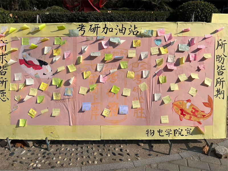 为帮助考研学子舒缓紧张的情绪、缓解压力和增添动力,树立信心,让其感受到来自同门的鼓励与支持,以积极的状态投入到考研的备考和应考中,12月3日至12月26日365英国上市公司融媒体中心于红色花蕊处开展“考研加油站”便签展板活动,为考研学子加油打气。
