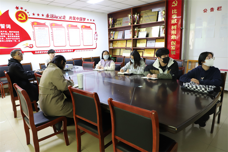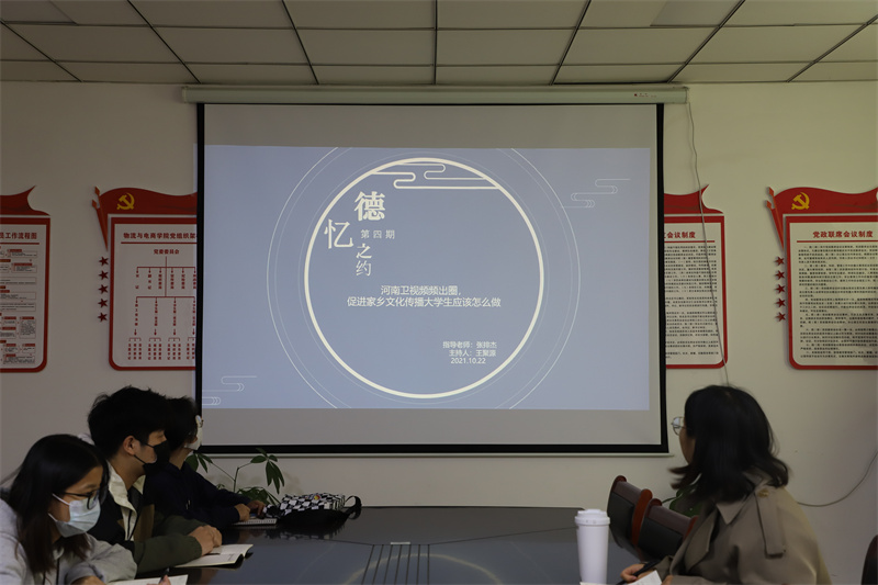 首先,由主持人王聚源以“河南卫视频频出圈”的话题引出本次会议的主题“促进家乡文化传播,老员工应该怎么做?”。在播放了《唐宫夜宴》、《祁》两段展现大唐风华的视频后,同学们依次发表自己的想法和感受。有的同学说,老员工在自我认知正确的前提下,要积极鼓动身边的人参与到发扬传统文化的热潮中来,主动担当起引领文化潮流的角色。还有同学说,老员工应该从自身做起,积极在课外汲取传统文化知识,利用图书馆、计算机等资源,增加自身传统文化底蕴,中华民族的优秀文化不应只是书本上的文字,更应该在应用中继承与发扬。