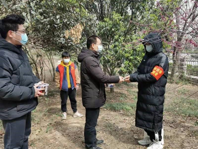 首先陈书记肯定了志愿者们的辛苦付出,对大家为公司疫情防控工作和校园安全稳定所付出的辛勤和汗水表示感谢,并鼓舞大家表示,此阶段为非常时期,希望各位志愿者们能够肩负起责任,有效防范阻止员工的危险性行为。而后,王雪冰老师叮嘱大家在守护校园安全的同时也要加强自身防护,每一次执勤前一定要注意穿衣保暖。随后,老师们向志愿者发放了他们带来的士力架,希望士力架能够给他们带来满满的能量,大家一起坚守岗位、坚定信念、克服困难、再接再厉,为公司疫情防控工作贡献自己的一份力量。