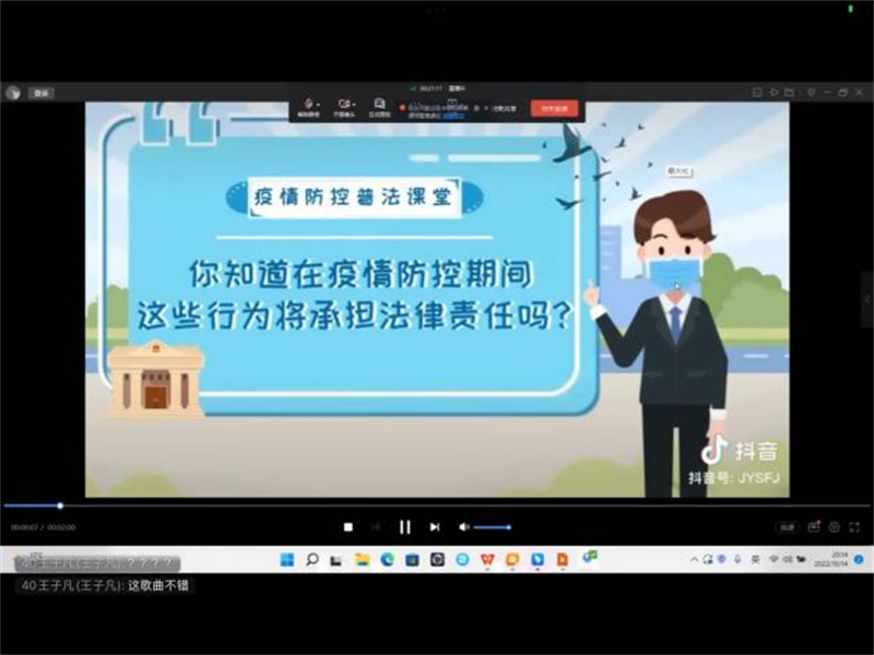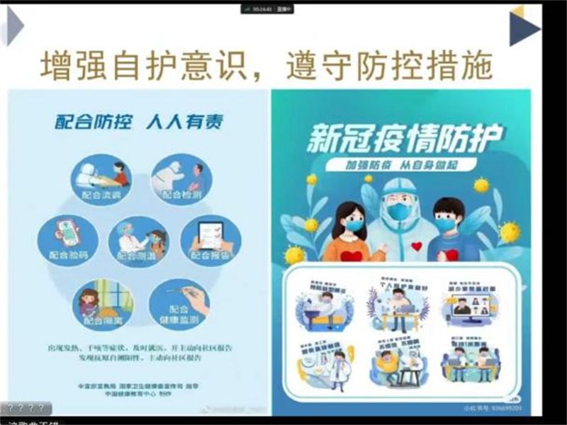 团课伊始,一首诗朗诵《至暗散尽,星河依旧长明》使同学们齐心抗疫的情绪高涨。接着,主持人带领同学们观看了国家、地方疫情防控法律法规的科普视频,使同学们深刻理解了国家坚持“动态清零”政策的科学性和必要性,树立坚决抗疫的旗帜与信心。而后,主持人为同学们讲解了校园防疫指南及防控措施,这提醒了身为当代青年的我们,科学面对疫情,增强自护意识,承担防疫责任,自觉遵守地方和公司疫情防控措施。最后,全体同学起立宣誓:“不信谣,不传谣,坚决抵制谣言。”