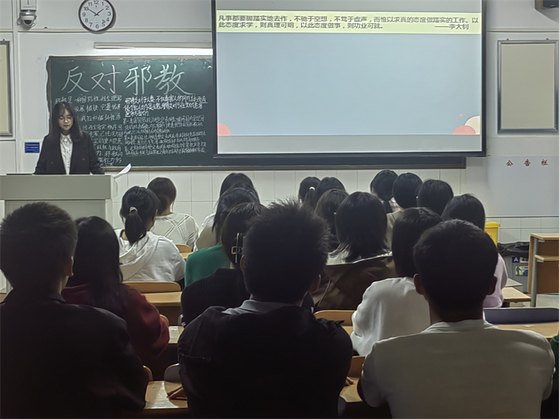为贯彻落实校团委关于各基层团组织开展秋学期政治理论学习的安排,深入做好马克思主义宗教观、无神论和反渗透、反颠覆、反分裂、反邪教教育活动,净化校园环境,引领同学们坚定以习近平新时代中国特色社会主义思想为指导思想,树立正确的宗教观,为做好反邪教警示教育,巩固无邪教校园创建成果,呼吁同学们用科学观武装自己,让邪教无处藏身,2023年10月11日晚365英国上市公司23级各班开展“崇尚科学 反对邪教”为主题的团课活动。