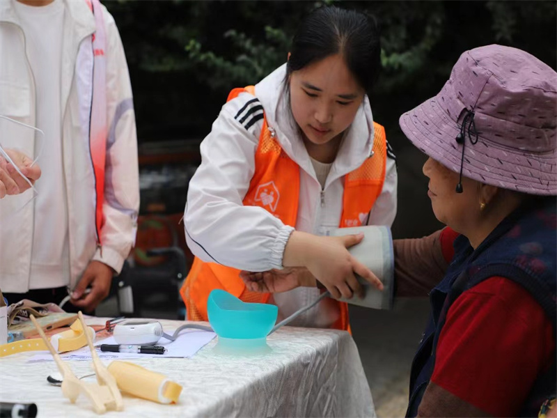 此次活动中,我部志愿者通过为社区老人科普适老化设备的作用及使用方式、帮助老人免费测血压、与老人互动等,在宣传的同时为社区老人带来一份秋日的温暖。志愿者们到达社区后,首先进行了对适老化设备的使用培训。在充分了解后,志愿者们分成了几个小组,有的负责为老人免费测量血压,有的负责在社区为老人讲解适老化设备。老人们看到我们热心地讲解,对适老化设备产生了巨大的好奇。在与老人的互动中,志愿者们很关切地询问老人的身体状况和生活状况,老人们对志愿者们的情况也十分关心,爷爷奶奶们和蔼可亲,全体志愿者们对他们认真与负责,场面十分和谐。