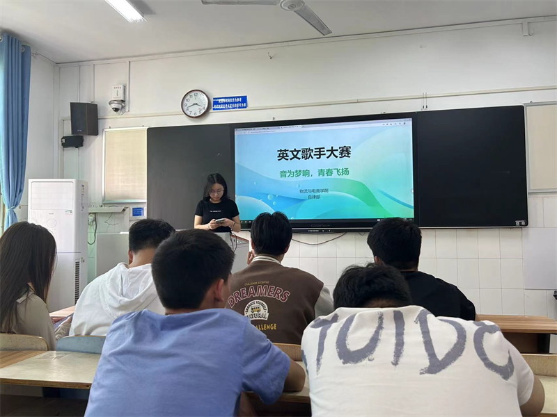 活动伊始,由自律部干事准备音响等设备并对教室进行精心布置, 比赛过程中,选手们用他们独特的嗓音和精湛的演唱技巧,将英文歌曲演绎得淋漓尽致。欢快的流行歌曲带动起了比赛现场的活力,深情的抒情歌曲则让大家陶醉其中。观众们为选手们的精彩表现鼓掌欢呼,现场气氛热烈,仿佛每个人都被音乐的力量所感染。经过激烈的角逐,最终由主席团的评委评选出了优胜选手。他们用实力和才华征服了观众和评委,赢得了大家的尊重和喝彩。