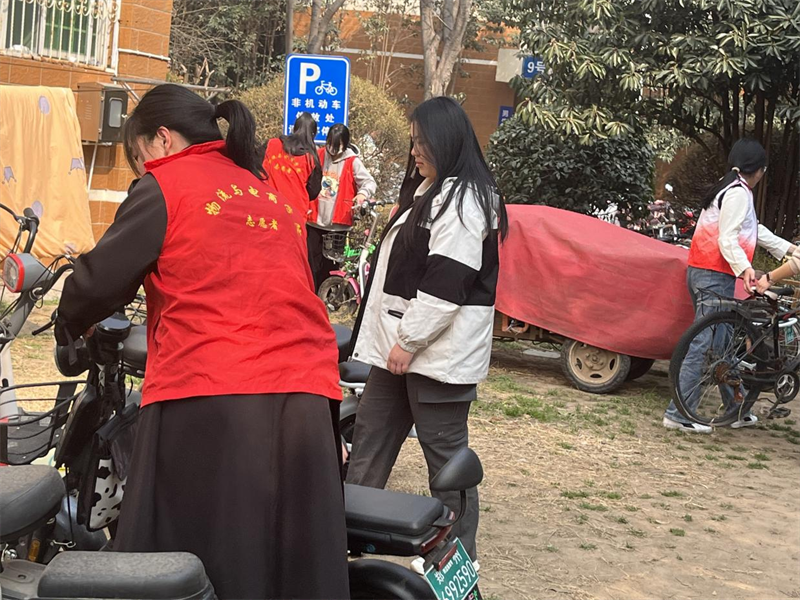 活动开始前,志愿者们提前做好宣传准备。呼吁各班团员参与本次活动,团员们积极踊跃,通过悬挂横幅、设置展板等形式,营造了浓厚的宣传氛围。志愿者们纷纷表示:创建文明校园是大家的责任与义务,作为团员更应该为大家树立榜样。活动现场,志愿者们穿上志愿服,向同学们详细讲解了车辆摆放的规范要求和注意事项。同时,志愿者们分成小组,在自己的指定位置提醒同学们车辆应统一停放在指定的位置。禁止在教学楼前、居住楼前、楼道口、教学楼一楼阳台等区域随意停放。其次,在特定区域停放车辆时,应主动将车辆摆放整齐,车头朝向一个方向,保持校园或公共区域的整洁和美观。志愿者们积极主动,热情开朗地帮助同学们正确摆放车辆,有利于交通的顺畅和安全。为同学们营造一个更加整洁、有序、安全的出行环境。
