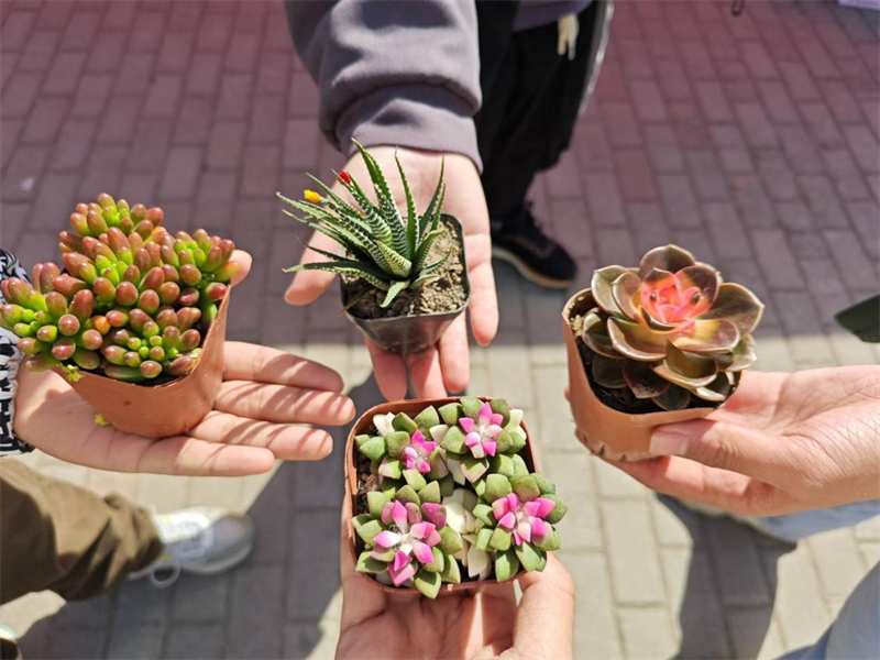 在活动开始之前志愿者们便早早地布置好了活动现场,摆好了活动所需的绿植花卉,每个人各司其职,讲解活动、登记人员,现场井井有条。这次活动中志愿者们收到了如旧书、纸盒这样的物品。旧物换绿植活动减少废弃物的产生,促进资源的循环利用。同学们通过旧物换绿植活动,可以将这些旧物进行回收,经过处理后转化为有用的资源,从而减少对自然资源的开采和消耗,培养同学们的环保意识。