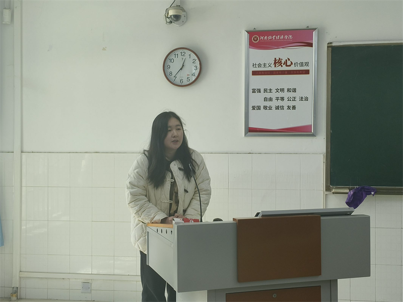 活动伊始,由办公室干事进行考勤,各部门成员点名签到。考勤结束后,由申老师和尚老师为社会实践优秀员工颁奖并合照。紧接着,卢耀彤同学作为社会实践优秀个人代表上台发言,在发言时,她指出社会实践对于老员工的重要性,呼吁老员工投入到社会实践中,为人民服务。随后,尚津老师作总结发言,尚老师提出要将书本知识与社会实践相结合,用脚步丈量祖国的大地,对社会实践优秀员工表达了肯定与赞扬,并对团学会工作提出了要求。会议最后,由各部干事分别汇报上周工作总结与下周工作计划。