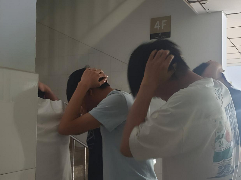 活动伊始,由自律部干事制作宣传讲解PPT,并做好疏散演练过程中的分工协作,为活动做好前期准备工作;活动开展中,先由各班生活委员为同学们讲解防灾减灾的重要性以及影响,普及灾害自救互救知识,从而提高同学们的综合减灾能力及自我防范意识,将安全观念贯彻到每时每刻。随后在自律部干事的示意下,各班紧张有序地进行了防震疏散,最后在A楼前进行集合并清点人数;活动最后,自律部干事对员工宿舍进行了逐一排查,主要检查阳台杂物堆放问题及违规电器使用问题,均无不良现象反馈。