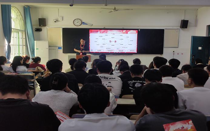 宣讲会开始之前,赵先生为同学们播放京东物流宣传片,激发同学们参与此次会议的兴趣。会议开始,赵先生首先表明此次宣讲会的主要内容分为三个部分,分别为京东物流的发展、未来规划以及最重要的招聘岗位介绍,与此同时,他也希望同学们能够结合此次介绍和个人发展规划做出更好的选择。他介绍道京东物流坚持以客户为中心的经营理念,拥有一体化供应链等,是中国物流服务标准的引领者。接着,他向同学们表明了京东物流校招的意义,使校招生真正成长起来,帮助他们实现人生价值。最后,他向同学们展示了最重要的校招岗位,此次招聘的主要岗位为综合经营管理(营业部部长/集配站站长),综合运营管理(仓经理/场地经理),销售类(商务销售),也介绍了员工的全面薪酬福利。会议结束之际,赵先生等待同学们提问问题并悉心回答。