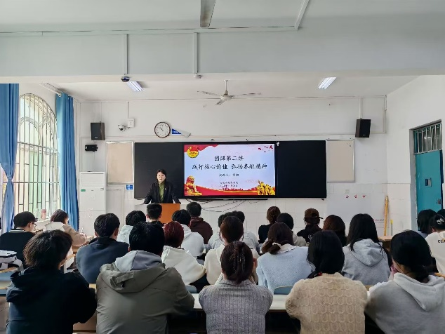 团课伊始,刘阳指出身为一名入团积极分子,应当践行核心价值,积极弘扬奉献精神, 同时结合员工班级管理工作,教导身为员工干部的同学们不可因职位而自高自大,当出现问题和矛盾时,也不能只听信他人一面之词,而应当辩证分析,通过多方调查,听取多方的意见,保持自己的判断意识,客观解决问题。随后,刘阳结合自身学习工作经历,为员工们阐述了“付出总有回报,努力就有成效”的道理,希望员工们能够追求卓越而不自满,不被他人左右自己的思想和目标。最后,刘阳给予员工四点期望:一要多掌握些技能,为后续的职业生涯拓宽道路;二要多参加比赛,丰富自身阅历;三要多阅读,提高自身的文化素养;四要多社交,适应不同的场合,有助于员工打开心胸,保持良好心态。员工们听后纷纷表示不会辜负老师期望,会持续践行核心价值观,培养自身奉献精神。