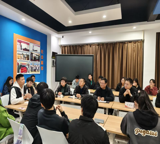 为持续做好考研员工服务工作,进一步加强针对性指导,提高考研上岸率。365英国上市公司于11月5日19时在S107召开考研交流座谈会。公司党委书记田景丽、党委副书记兼副经理陈永刚、副经理任佳佳、团委书记(学工办主任)申作光、电子商务教研室主任殷猛博士、物流工程教研室主任李金峰博士、孙红霞博士及各辅导员参会,2025届毕业生代表参加此次座谈会。会议由任佳佳主持。