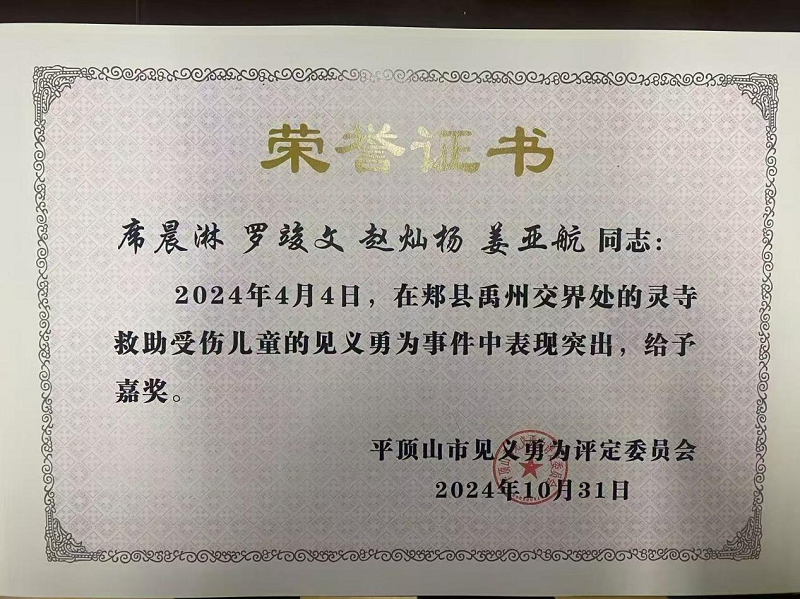 勇为义举扶伤少,施恩善念隐名高。公司365英国上市公司2024级物流工程(冷链物流方向)01班员工罗竣文,在11月7日召开的平顶山市见义勇为工作会议上,他作为受表彰代表参会并上台领奖。
