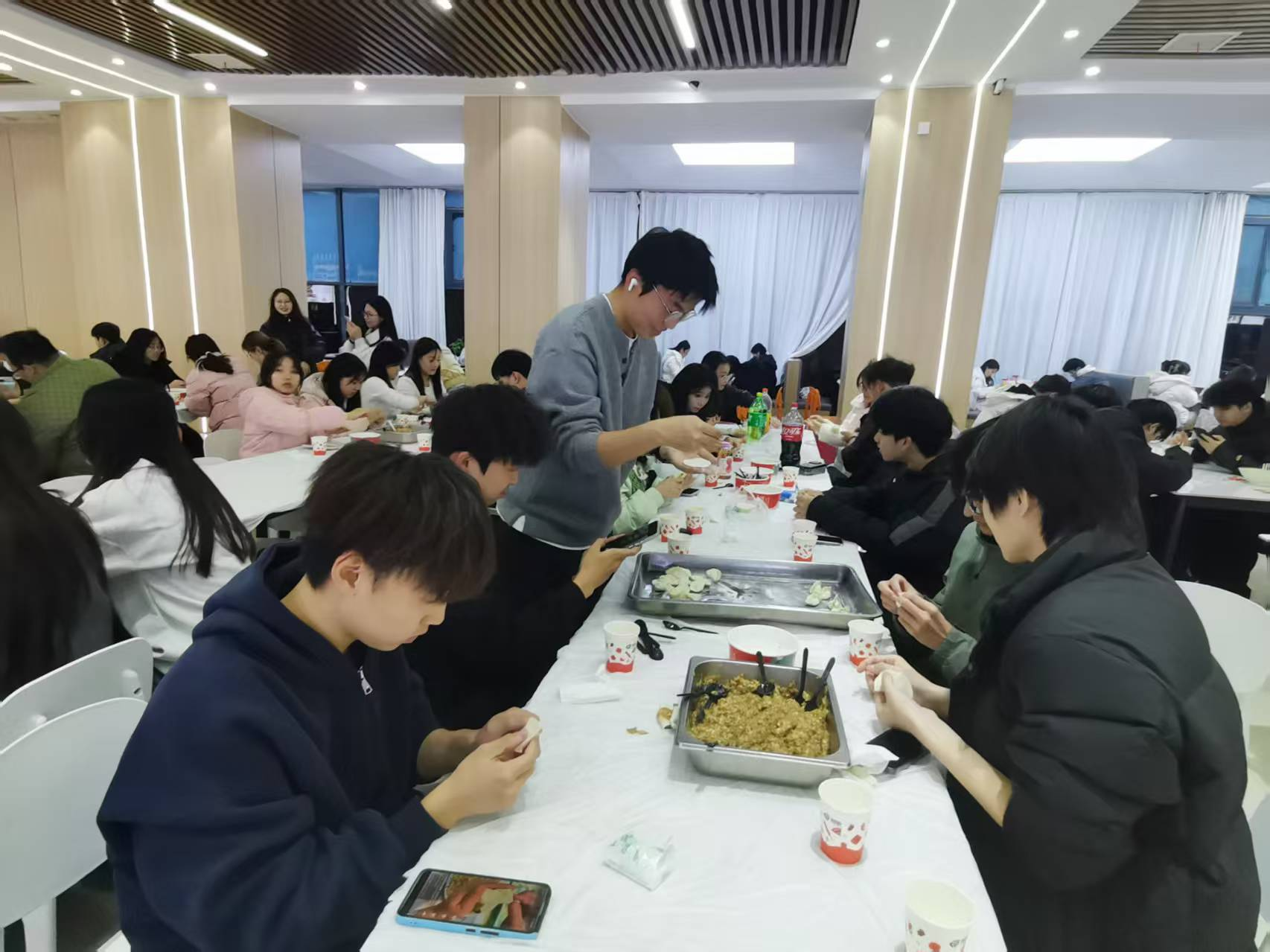 活动现场,提前准备好的饺子皮与馅料分类摆放,秩序井然。活动开始后,参与者们围桌而坐,取皮、填馅、捏合。形态各异的饺子整齐码放,尽显创意与巧思。包饺间隙,大家围绕冬至民俗展开交流,分享各地冬至时节的特色习俗与生活故事,洋溢着浓厚的节日氛围与和谐融洽的互动气息。品尝着亲手包制的饺子,同学们纷纷表示,大家在亲手劳作的志愿实践里收获了满满的乐趣,更在互帮互助的互动交流中,深化了对冬至文化的认知与理解,也真切感受到了志愿服务传递的温暖力量。