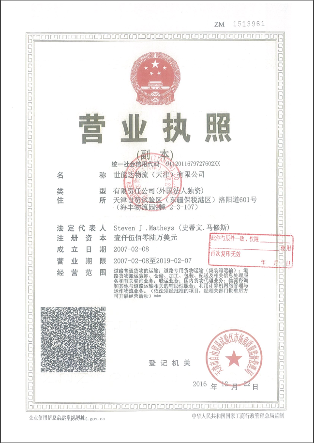 世能达物流(天津)有限公司