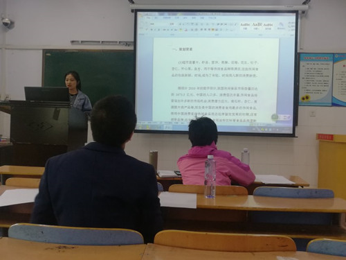 本次大赛在主持人的宣布下拉开了序幕。比赛中,各参赛选手均高度专心的向评委展示着自己的营销策划方案,对每一条信息都认真解释。虽然各类食品和生活用品营销错综复杂,但是王书记和胡老师很有耐心,对选手的每一个方案都进行了认真核对及确认。他们高度负责的态度也深深地激励着每一个选手和在场观赛的人员。在赛程中,王书记向各位选手提出了很多有价值的建议,她鼓励大家勇于实践,不惧失败,要结合实际制定合理的方案,并表示愿意提供公司的各种资源助力同学们敢于圆梦、勇于圆梦。随后,胡老师指出了选手用词不准确的问题并且有耐心的对“竞争力”和“市场竞争”两个名词进行解释。他讲到,竞争力是企业或个人相较于竞争对手而言所具备竞争优势,而市场竞争是指参与者双方或多方一种角逐。现场气氛良好,大赛也圆满结束。