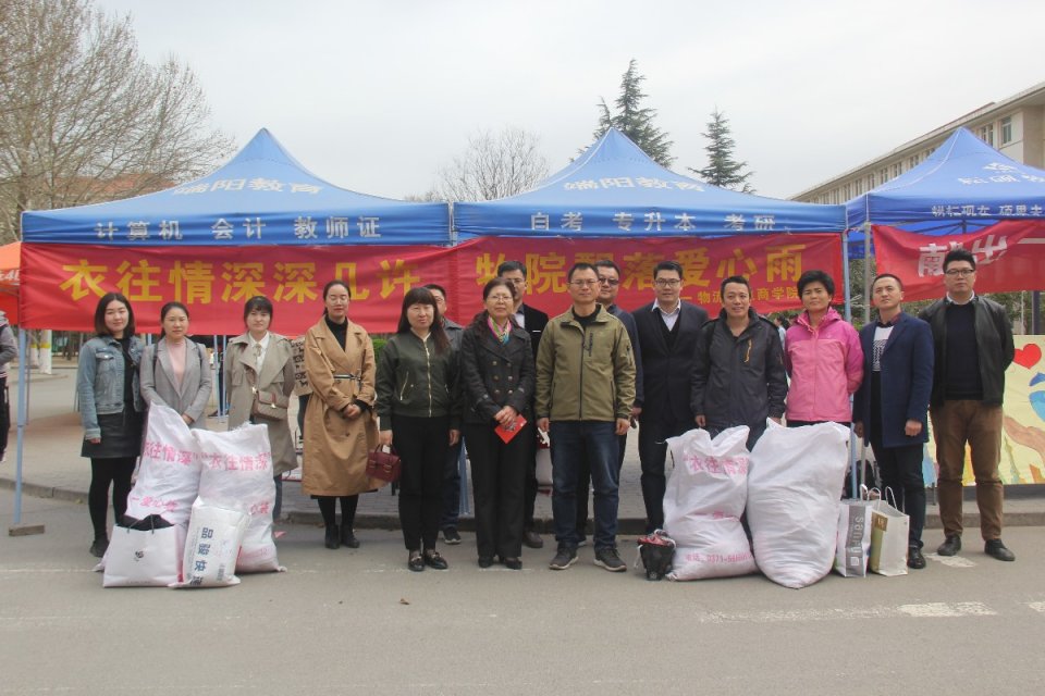 为培育和践行社会主义核心价值观,大力弘扬雷锋精神和"奉献、友爱、互助、进步"的志愿服务精神。由阳光志愿者分会主办,公司党总支和团学会社实部承办的“衣往情深”公益志愿服务活动在红色花蕊开展,活动为期14天。党总支书记宋之苓带领院系全体教师积极参与到此次公益活动中来。