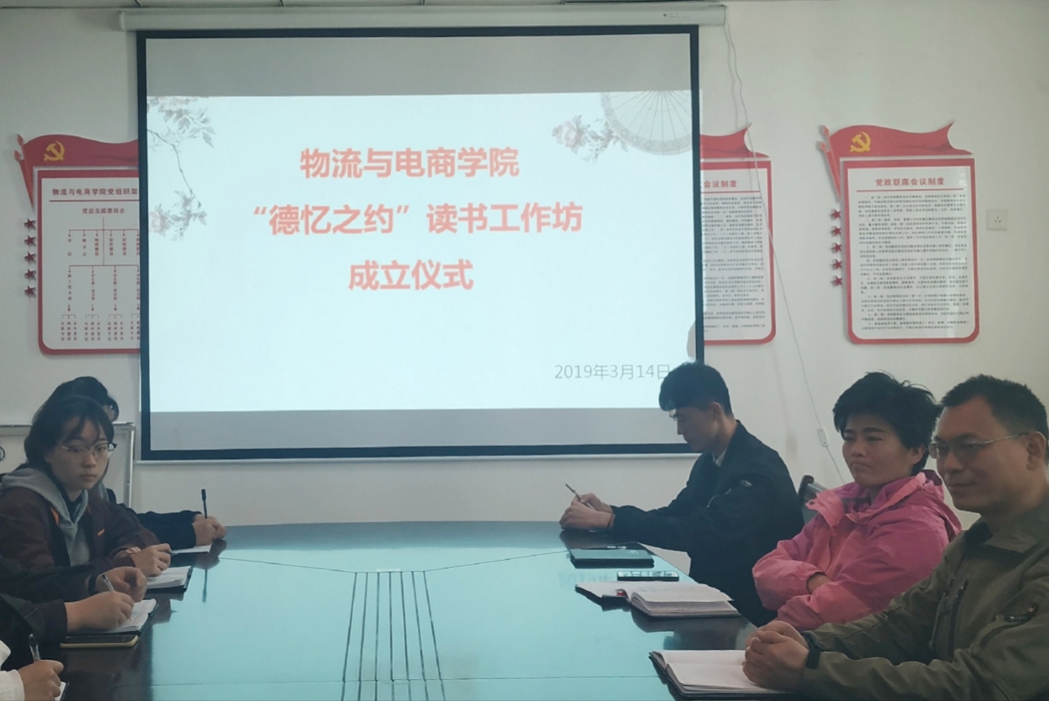 书香满校园,读书伴我行。为丰富校园文化,营造好读书、读好书的良好氛围,3月14日下午教学办公楼312成功举办“德忆之约”读书工作坊成立仪式暨第一期读书沙龙。党总支副书记陈永刚、团总支书记王玉香、辅导员老师王元杰、刘阳、尚津及团学会员工干部代表30余人参加了此次活动。