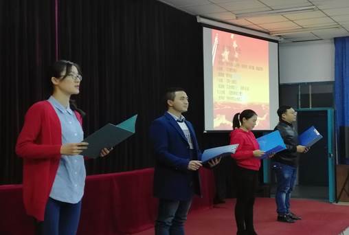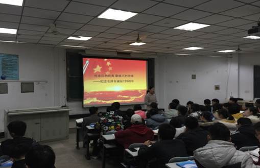此次活动于12月17日开始,由校宣传部主办,理学部、物电公司、文法公司联合承办。活动由四个部分组成。一是理学部、物电公司、文法公司于12月20日组织教工和员工代表开展了“传承红色经典 歌咏不朽华章——纪念毛泽东诞辰125周年红歌会”主题党日活动。师生们在《走向复兴》、《唱支山歌给党听》、《打靶归来》等歌唱中重温了红色经典,唱出了红色精神;二是三院部全体教师在课堂上利用课前几分钟和第一张PPT组织员工诵读毛泽东诗词、歌唱红色经典,将教书育人融入课堂。在《诉衷肠》、《七律·长征》等诵读中,缅怀了领袖风采,增加同学们的责任感;三是文法公司、物电公司组织员工开展“早晨读经典”活动,让员工通过诵读毛泽东诗词,铭记历史,不忘初心;四是三院部分别组织教工开展毛泽东诗词诵读和唱红歌活动,使教工们再次接受红色洗礼,扛起肩头育人大任。