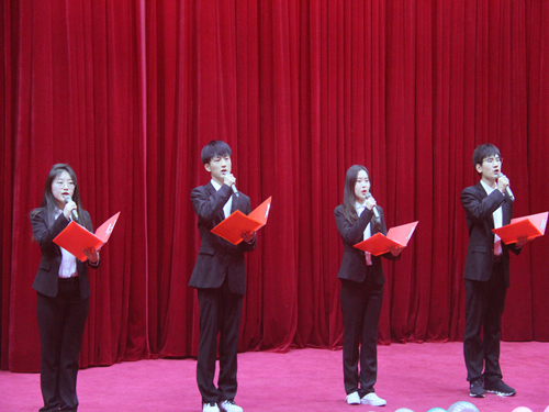 伴随着柔美的音乐,此次朗诵会缓缓拉开序幕。朗诵者们或激昂,或柔缓,或急促,或随和,满怀激情地赞美着中国共同抗疫的奋斗精神,深情款款地表达了对党和国家的忠诚,满怀期待地述说着祖国的美好未来。首先,公司主持朗诵队成员带来诗歌朗诵《月光下中国》,他们意气风发、气势磅礴的朗诵,为大家展现了一幅幅壮美的祖国画卷,赢得了在座师生的阵阵掌声。接着,由公司曹献存经理、李艳菊副经理、任佳佳老师、殷猛老师、肖丽平老师进行诗歌朗诵《我的祖国》,伴随着音乐的跌宕起伏,他们饱含深情地歌颂祖国,把大家带回革命年代,感受顽强不屈的民族之魂。贺国杰、李利晓、刘博、孙红霞四位老师对《沁园春.雪》在朗诵会上有了另一种演绎,气势昂扬不惧万难,引发了同学们内心的共鸣。由杨奇奇、尚津、刘阳三位老师朗诵的《抗疫中国》铿锵有力,展现出中国的担当和人民团结一心的精神。接着,杨梦帆同学演唱了歌曲《绒花》,诗句一般的歌词,令人反复寻味,歌唱者的浅唱低吟也深深地打动在座的每一个人。王佩芳同学朗诵的《党的赞歌》心系中华,为万世开太平而赞美。坚韧勇敢抗疫逆行,以爱之名守望相助。赵腾腾同学朗诵的诗歌《面对鲜红的党旗》,表达了一心向党的坚强意志。任超士、杨贵琰等同学的诗歌《我,向人民报道》,是对所有在抗疫之战中的平凡英雄的致敬。谢琪琪、侯云浩两位朗诵者的《点燃明天》,用时空角度,通过今昔的对比,道出了中国几十年光景之变,表达了对祖国光明未来的美好祝愿。曲智群、杨孟科两位同学的一首《千里之外》让观众感受到远方思念之人真挚而美好的祝愿。邵新茹同学的《歌唱祖国》深情抒发了对祖国母亲的热爱和赞美。最后,主持朗诵队以一首《我看见》压轴出场,将朗诵会推向高潮。缅怀先烈,礼赞祖国,在武汉疫情中,感受中国的力量,用坚守见证人民的责任和担当,每一位朗诵者都深情诠释着经典。至此,朗诵会圆满结束。