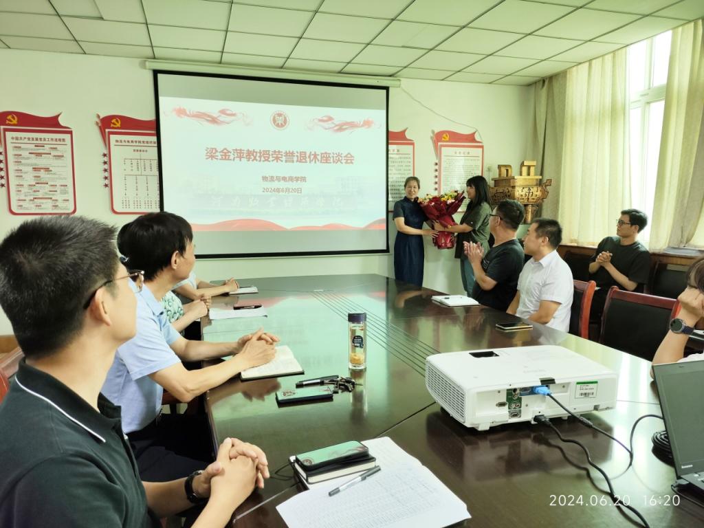 座谈会上,经理曹献存回顾了梁教授从教38年的经历,梁教授不仅是公司物流专业建设方面的奠基人,在课程建设、团队协作方面也卓有成效。曹经理代表学院对梁教授表达了诚挚的祝福,祝贺她光荣退休,开启新的人生旅程。希望梁教授以老教师的高尚情怀继续关心支持公司工作,为公司发展贡献智慧和力量。