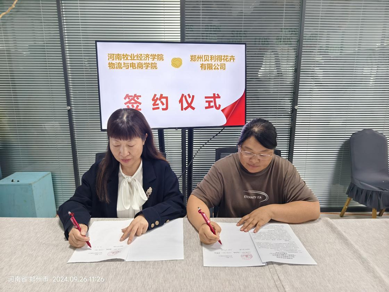 2024年9月26日,物流与电商公司党委书记田景丽、经理曹献存、副经理李艳菊、专业负责人及教师代表等分别赴河南君友数字科技有限公司、郑州贝利得花卉有限公司两家企业,举行“校企研发中心”合作协议签订和挂牌仪式,开启了校企合作的新篇章。