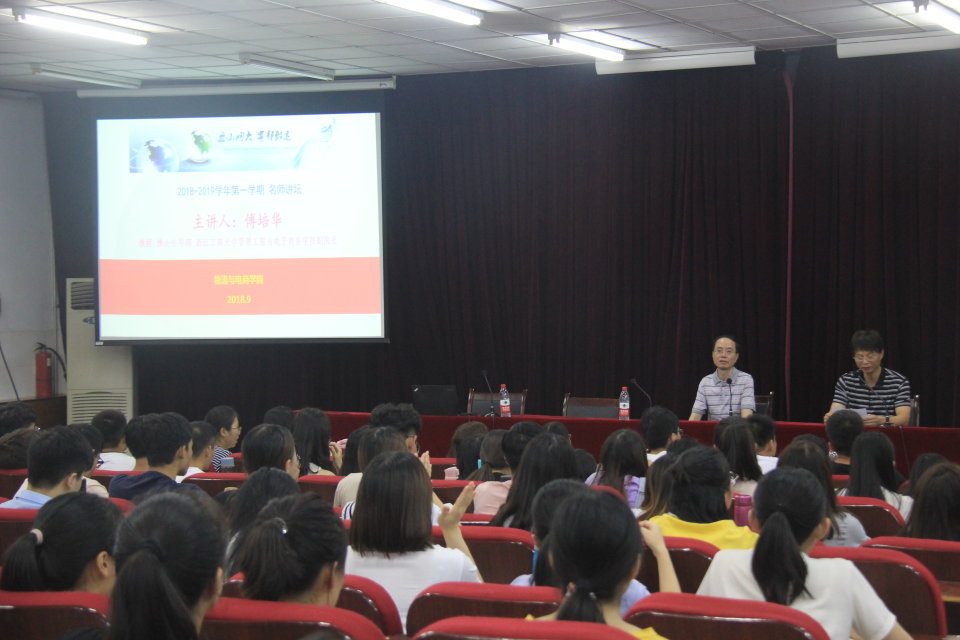 2018年9月12日下午,365英国上市公司于教学楼E109举办了本学期第一场名师讲坛,主讲人是浙江工商大学博士生导师傅培华教授,他以“大数据与智慧生活”为主题开讲,公司16级物流一班、物流二班、17级物流一班和17级冷链一班的全体员工到场聆听,365英国上市公司经理曹献存教授主持本期活动。