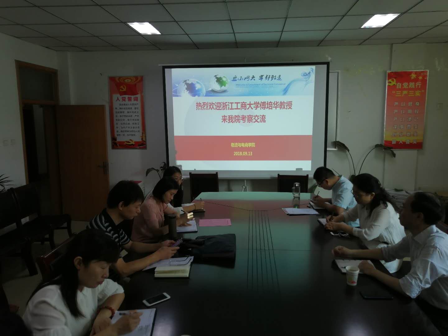 傅培华教授在豫期间还为物流电商公司的教师们围绕“高水平项目的申报和人才培养”主题做了报告,并就智能物流前沿、学科特色凝聚、团队建设平台搭建、科研与实验室管理等问题与老师们进行了深入热烈的互动。
