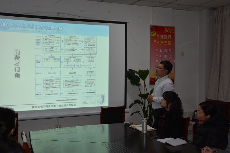 1214日上午,西安交通大学电子商务研究所殷猛博士应邀来公司交流,作为本学期名师讲坛第三期主讲嘉宾,他以“移动健康管理应用的消费者粘性研究”为题向公司三农电商和冷链物流2个科研创新团队成员做了陈述分析,物流电商公司经理曹献存教授、党总支书记宋之苓教授出席本次活动,讲座由副经理李艳菊教授主持。