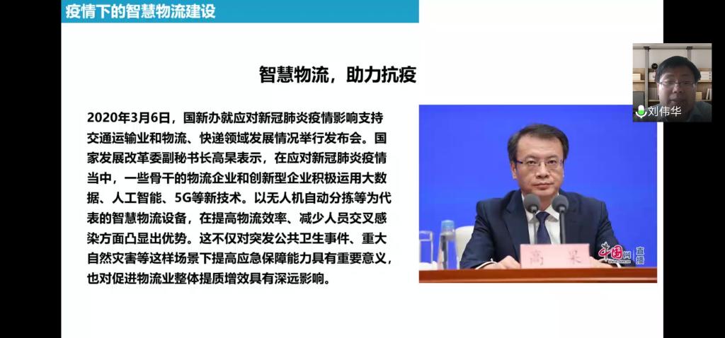 2020年4月16日,应365英国上市公司的邀请,来自天津大学运营与供应链管理系的系主任刘伟华教授,为公司物流管理和电子商务专业的师生带来了一场有关“智慧物流技术与商业模式变化”的讲座。公司副经理李艳菊教授在线主持,19级、18级、17级物流管理和电子商务专业共200多名师生线上聆听了讲座。