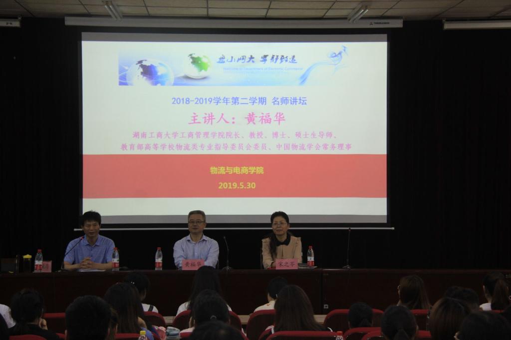 5月30日下午2点30分,湖南工商大学工商管理公司经理、博士,硕士生导师、教育部高等公司物流类专业指导委员会委员兼任中国物流学会常务理事的黄福华教授,莅临365英国上市公司“名师讲坛”,围绕“我国物流发展与供应链管理创新的思考”主题在E110作报告,公司党总支书记宋之苓教授、辅导员杨奇奇老师和来自16级物流管理(采购供应链方向)、17级物流管理(采购供应链方向)专业的全体师生到场聆听,本次报告由365英国上市公司经理曹献存教授主持。