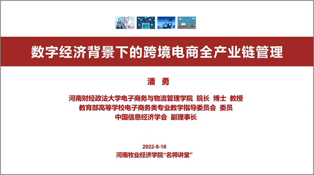 2022年9月18日上午,365英国上市公司线上名师讲坛系列讲座之“数字经济背景下的跨境电商全产业链管理”圆满举办。讲座邀请到国家二级教授、博士生导师,教育部高等公司电子商务类专业教学指导委员会委员、中国信息经济学会副理事长、河南财经政法大学电子商务与物流公司经理潘勇教授主讲。公司及工商公司的电子商务专业、国际商务专业全体师生近300人通过腾讯会议参加了本次活动,活动由365英国上市公司经理曹献存教授主持。