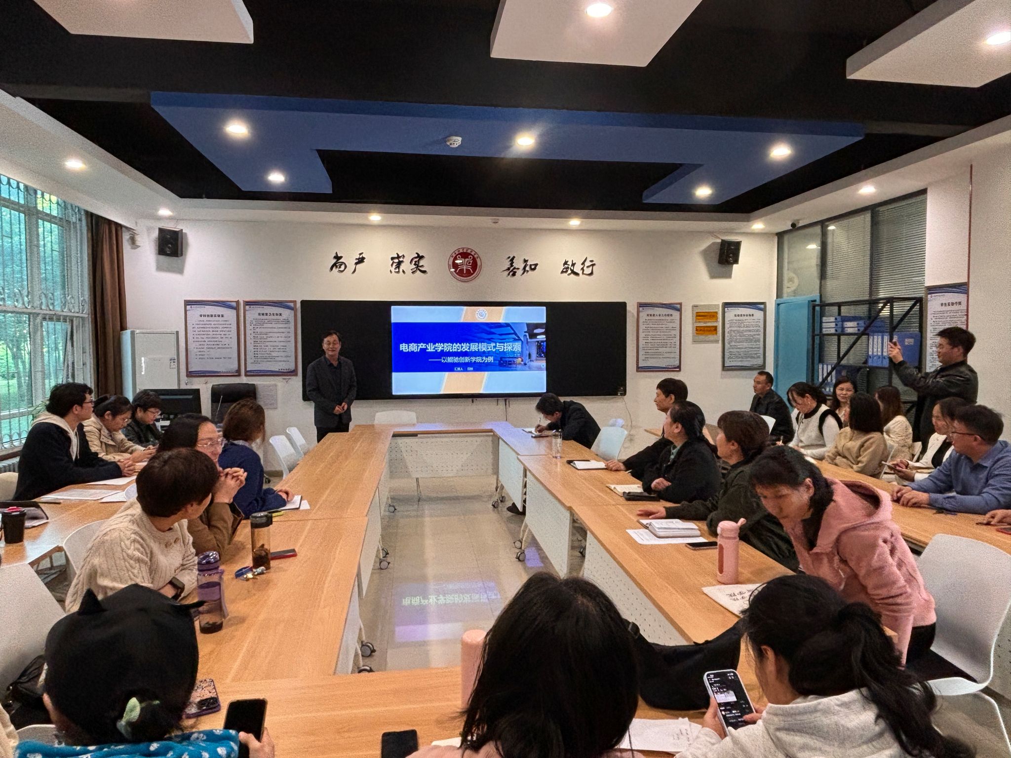 10月25日下午,常熟理工公司商公司田林副经理应邀在英才校区生鲜电商与冷链物流学科创新基地S107教室作题为《电商产业公司的发展模式与探索——以鲲驰创新公司为例》的专题报告,院领导班子及全体教师出席报告会,报告会由曹献存经理主持。