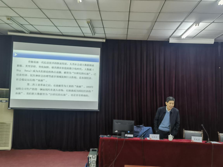讲座伊始,曹献存经理向同学们隆重介绍了赵德友专家在学科领域的卓越成就和丰富经验,强调了本次讲座对于同学们提升专业素养和实践能力的重要意义。随后赵德友专家在讲座中深入剖析了数字化和智能化时代的特征与发展趋势,指出这些变革对各行业的深远影响以及对高技能人才的迫切需求。他强调,在新时代背景下,高技能人才不仅要掌握传统的专业技能,更需具备数字化素养、创新思维和适应新技术发展的能力。他指出,随着新技术的广泛应用,传统职业技能需求发生巨大转变,对高技能人才的创新思维、数字化素养和跨学科能力提出了更高要求。赵德友专家依据党的二十大报告中习近平总书记关于数智化经济发展的论述,着重提出“在数字化、智能化浪潮下,培育具备统计学技能的专业人才显得尤为关键”,并由此从四个角度阐释了在新时代背景下,如何培养高素质技能人才以及这一过程与青年学子实现个人理想之间的紧密联系。在此过程中,他详细阐述了大数据与人工智能虽为两个关联紧密却各自独立的领域,他表示二者相辅相成,才会赋予我们更加强大、智能的数据处理、分析及决策能力。