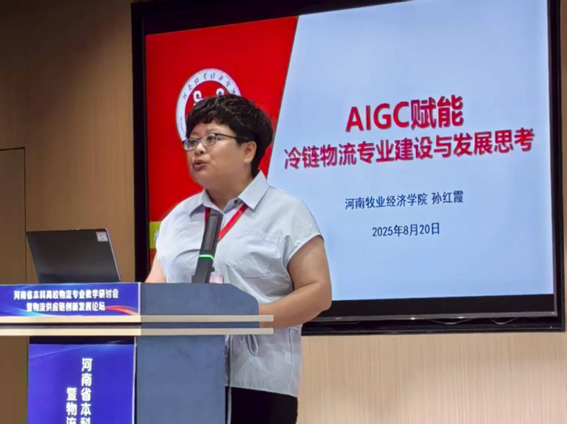 孙红霞博士以《AIGC赋能冷链物流专业建设与发展思考》为题发表主旨演讲。她从“教育智能化趋势”“冷链物流人才需求缺口”“产教融合实践路径”三大维度展开,系统介绍公司在冷链物流教育领域的创新成果。她强调:“面对智能物流人才结构性矛盾,需以AIGC技术为支点,重构‘政行校企学’五力协同机制。公司将探索‘企业命题—师生答题—成果转化’的闭环模式,破解教育滞后于产业的难题。”