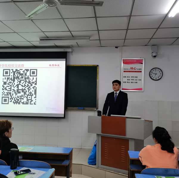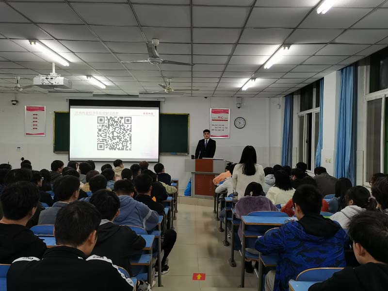 宣讲会上,企业负责人师文龙首先向同学们介绍了牧原物流的基本概况、发展方向以及人才需求。介绍到企业愿景时,师文龙负责人表示:牧原将始终秉承着“让人们吃上放心猪肉,享受丰盛人生”的初心。据了解,河南牧原物流有限公司为牧原实业集团控股子公司,成立于2017年,在职员工1000余人,2020年营业收入超10亿元。牧原物流依托牧原集团平台,建立了从原粮辅料、生猪运输,到屠宰加工的全程物流运输。公司致力于打造全国农牧物流标杆企业,构建“互联网+运输”智慧物流平台。企业招聘负责人表示,一个公司要不断发展壮大,就应不断注入新鲜的血液,因此非常期待同学们的加入,牧原物流始终坚信知识改变命运、奋斗成就高薪、跨界颠覆行业、创新开启未来的理念。三位到校负责人为同学们精心准备礼物,进行动,现场气氛融洽,招聘效果良好。