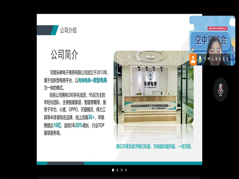会议伊始,乐畔人事刘莉愿首先播放了乐畔电子商务有限公司的宣传短片,帮助大家初步了解了乐畔电子商务有限公司。会议上,刘莉愿女士介绍了乐畔从创立至今的发展历程。表示本次招聘共需要20名带货主播(抖音/淘宝),底薪4k-6k+提成;客服(售前/售后)4名,薪资4k-10k+;采购1名,薪资4k-7k;运营助理3人,薪资待遇4k-5k;管培生5人,薪资4k-5k。河南乐畔电子商务有限公司位于郑州市二七区豫港大厦,地理位置优越,交通便利,可为员工提供房源信息,公司环境干净整洁,工作氛围轻松活跃。在答疑环节,招聘负责人对多位毕业生提出的问题进行答疑。通过答疑环节,让公司毕业生对企业工作有了更为全面的认识。