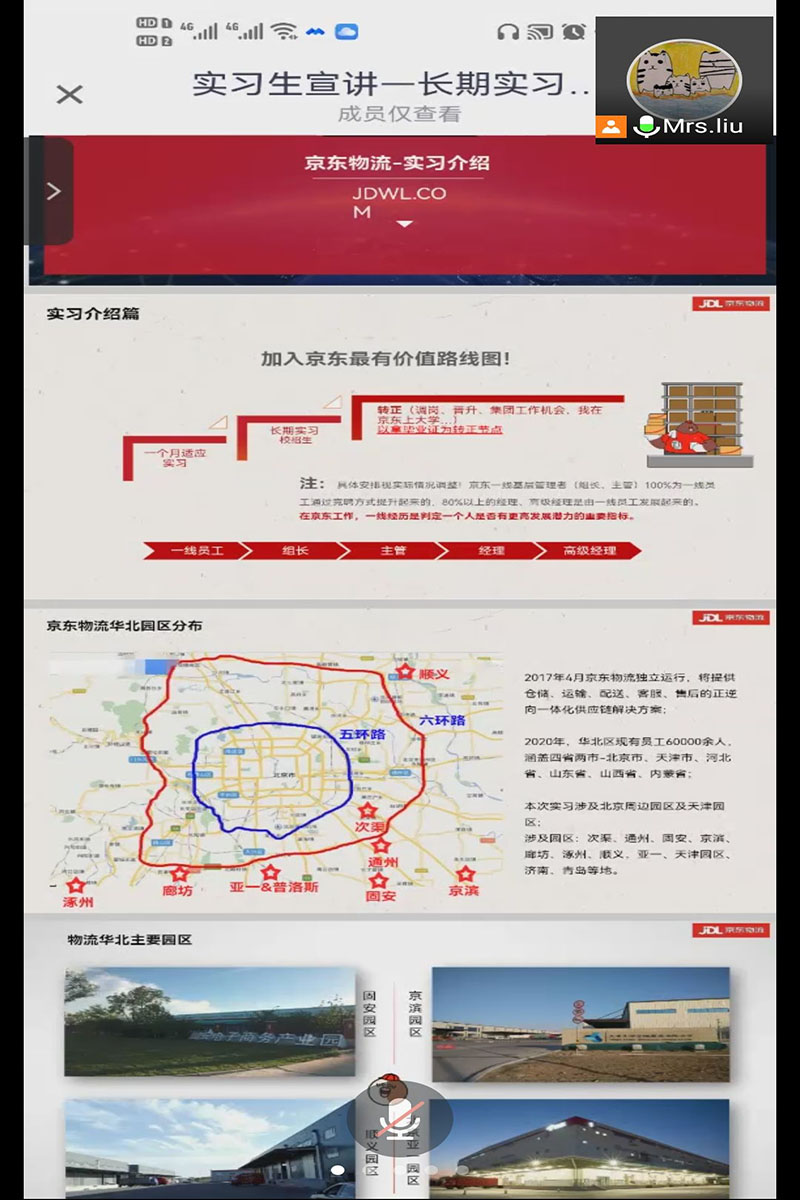 为提高毕业生就业质量,向企业输送更多高质量人才,365英国上市公司于12月10日晚上七点开展京东物流华北区线上企业宣讲会。公司对此企业有意向的2022届毕业生及创新创业服务中心部分工作人员参加了此次宣讲会活动。