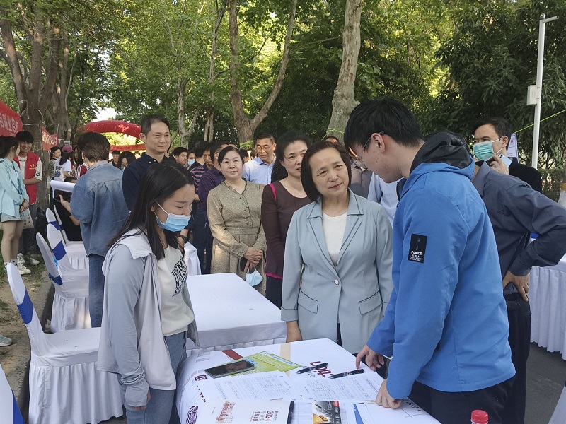 双选会期间,董事长尹新明、党委副书记姚毅、副董事长边传周等校领导在老员工就业创业指导服务中心副主任张琳及各院领导老师的陪同下莅临现场,询问毕业生就业意向、职业规划以及对当前就业市场的了解,鼓励员工与用人单位建立联系,了解企业需求,寻找合适工作机会。