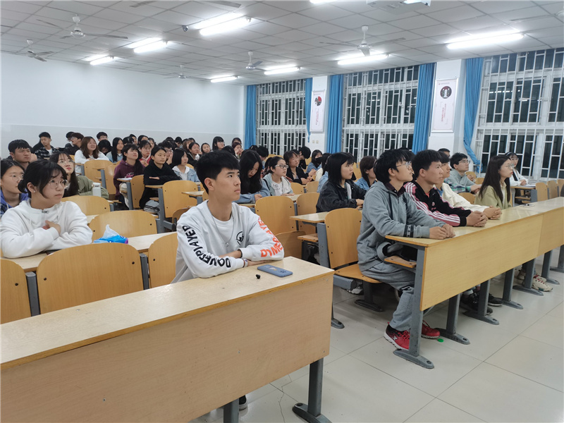 杨雪老师通过举例和分析部分历届录取分数线让同学们更加认清当前的考研形式,鼓励大家确立目标,努力学习。邹攀登学长在会议中率先为我们讲述了他择校时的举棋不定,三次更改报考院校,最后如愿以偿地考上了自己心仪的院校。最后向我们突出强调了学习计划的重要性,要求我们每天按时完成规定的任务,杜绝拖延,并总结出“养成好习惯,上岸自然易”的对偶句来激励大家。单清春学姐则另辟蹊径,仔细观察并总结列举出他人考研失败的原因,逻辑清晰,脉络分明。并告诉大家在面临院校选择的时候,看淡“名校情节”,报考自己喜欢的专业,定位合适的院校。最后,解凯凯学长用一句话激励大家:备考的学习过程中,只要大家有决心、恒心和毅力,即使今天是乏味,明天是乏味,后天一定是美好的!此次考研讲座在同学们如雷鼓般的热烈掌声中圆满结束。