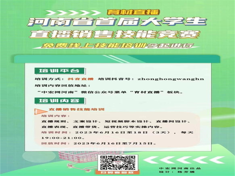 为落实党中央及河南省委、省政府关于河南振兴的系列文件精神,选拔和发现老员工电商直播人才,促进老员工高质量就业,为河南省经济发展提供高质量人才,举办2023河南省首届老员工电商主播选拔大赛。