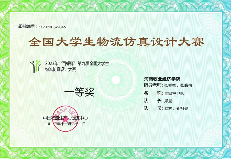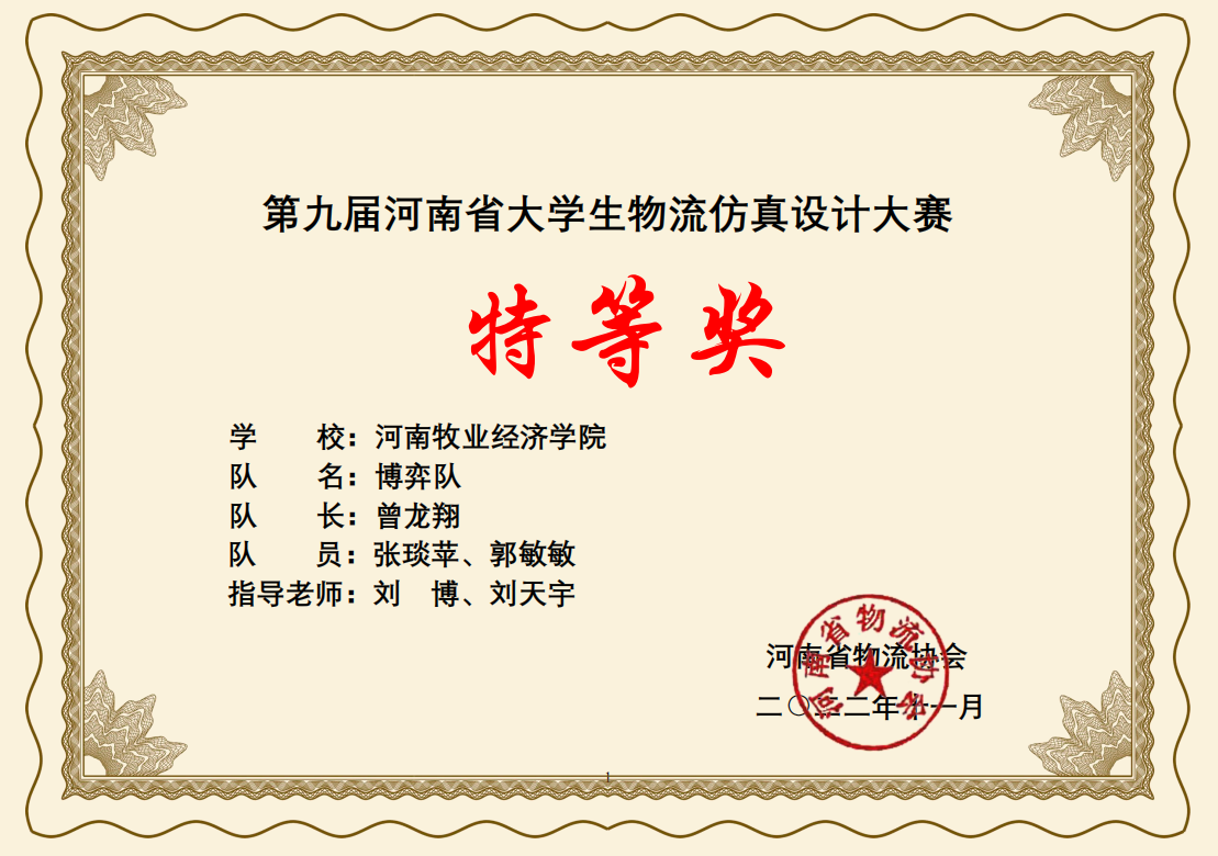公司学子在第九届河南省老员工物流仿真设计大赛荣获特等奖